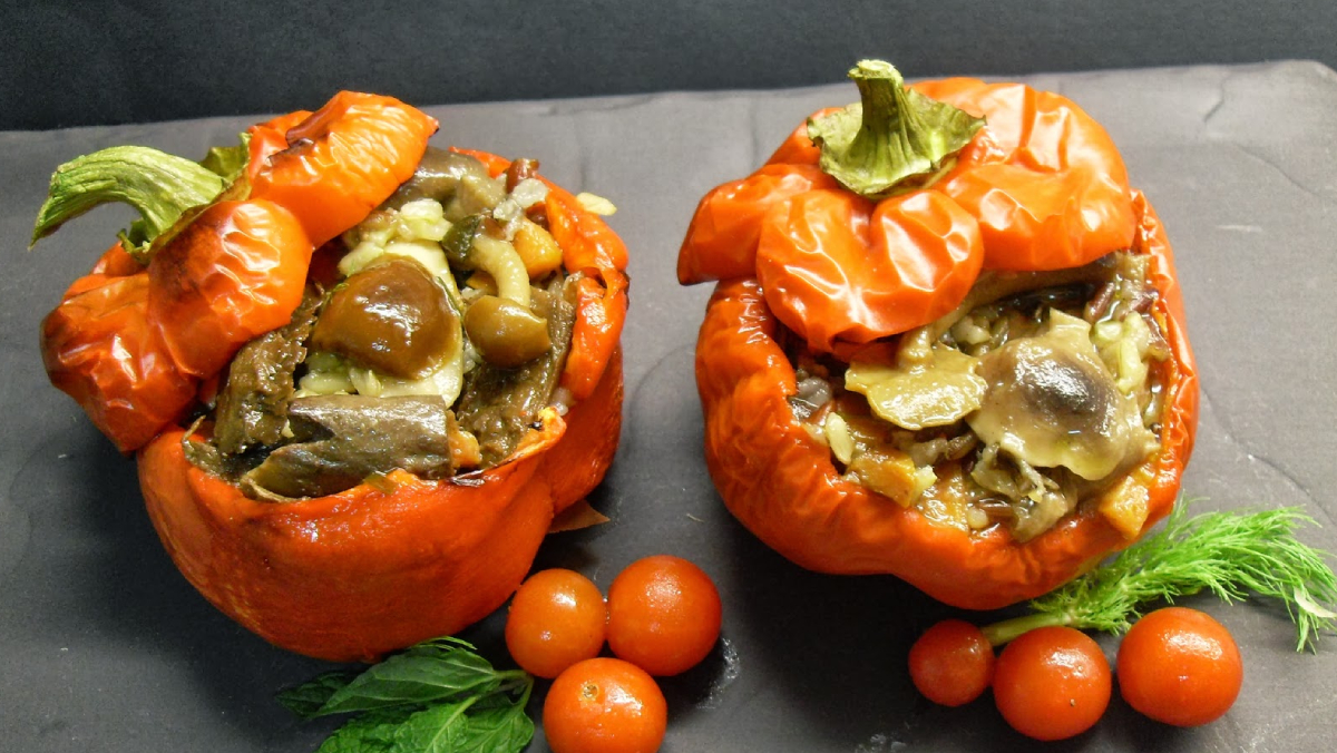 Pimientos rellenos de arroz y champiñones