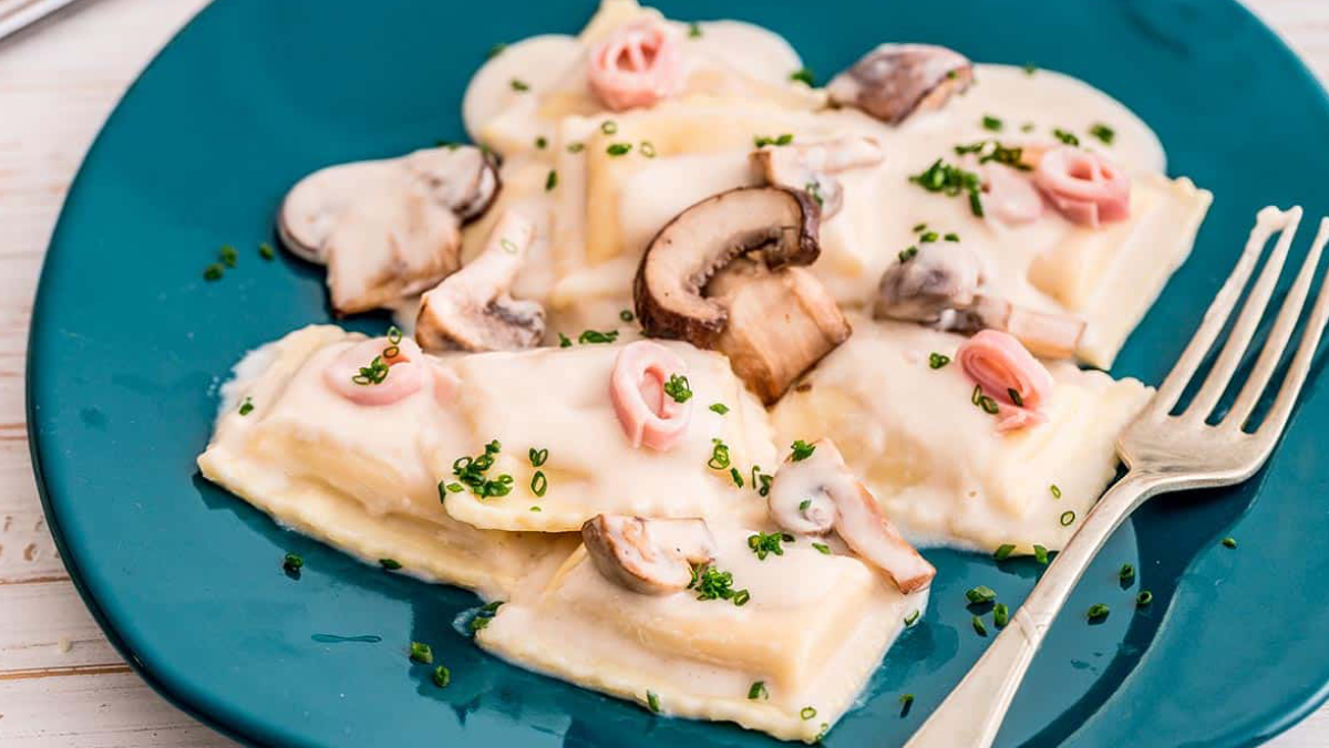 Ravioles de cordero con salsa de champiñones
